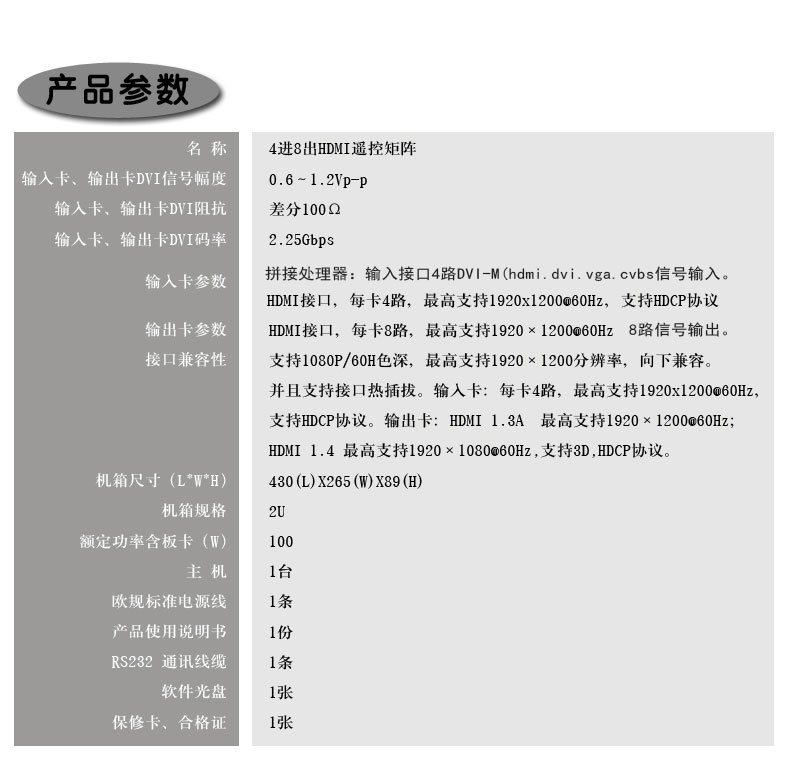 4进8出HDMI矩阵主机KD-DHDMI0408 网络监控视频服务器数字矩阵
