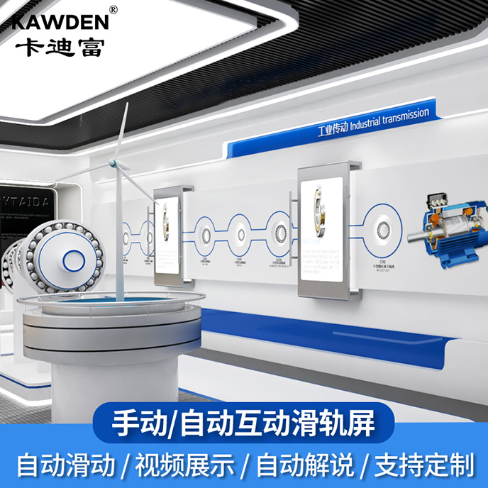 在展览展示中,滑轨屏通常以背景幕墙作为广告板或液晶屏,通过一组可滑动的机械轨道悬挂液晶显示屏。这些轨道可以设置多个感应点,当液晶显示屏移动到每个感应点时,就能自动播放对应的内容。内容可以包括图片、文字、视频等多种形式,并且可以与触摸屏同时使用,使展示更具科技感和智能化。