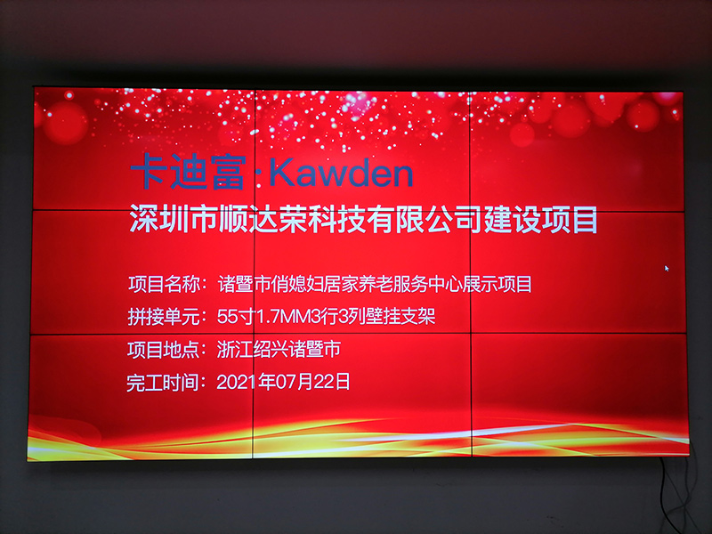 浙江绍兴诸暨市养老服务中心55寸1.7mm3X3拼接屏展示案例。