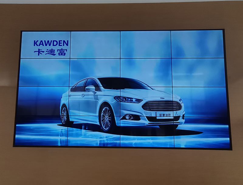 卡迪富拼接屏厂家助力山东莱州某福特4S店车行展示宣传,品牌提升。 山东莱州某福特4S店车行49寸3.5mm4X4拼...
