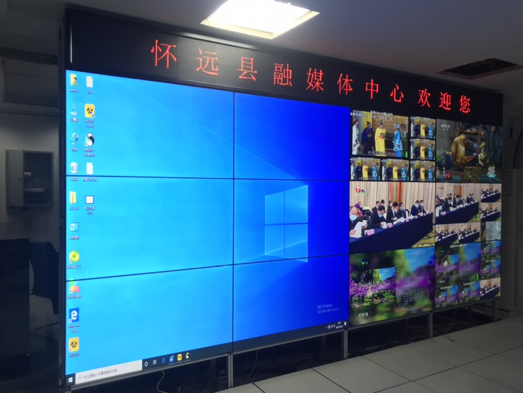合肥泛米智能科技拼接屏展示项目,采用卡迪富55寸3.5mm 3X3拼接屏,壁挂式效果安装(美观大方,便于安装);三...
