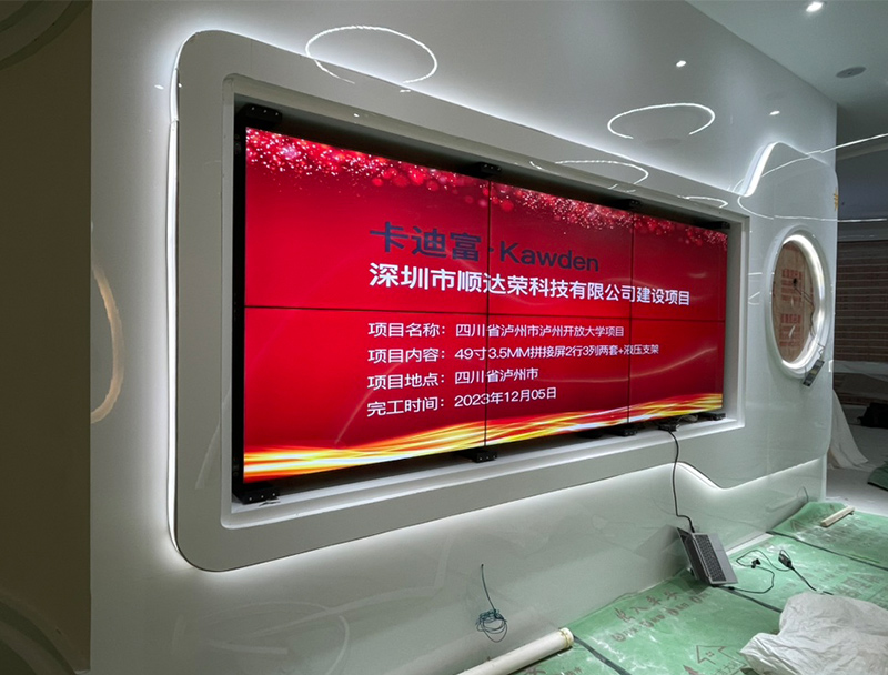 四川省泸州市泸州开放大学采用卡迪富49寸3.5MM拼接屏+液压支架安装大屏展示应用