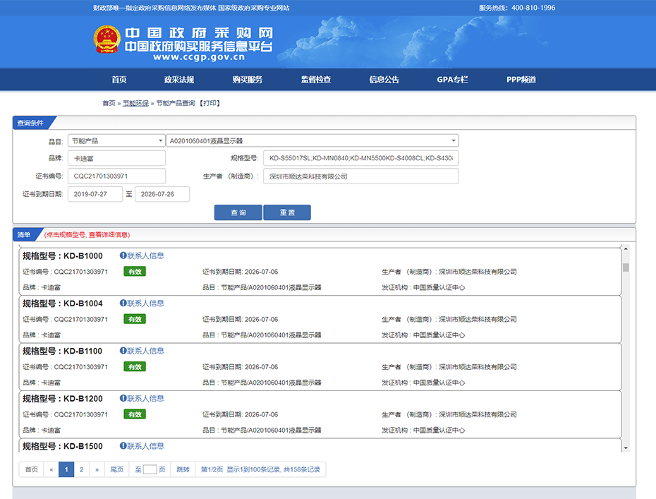 顺达荣科技(卡迪富)4月进入政府节能采购清单