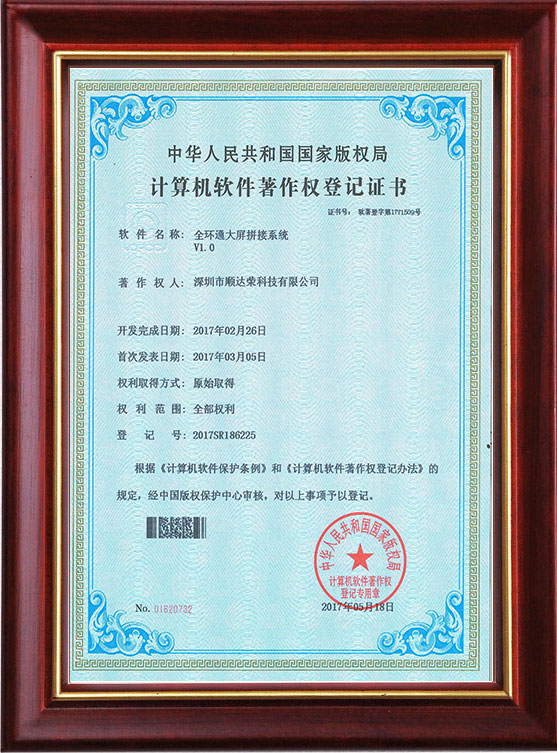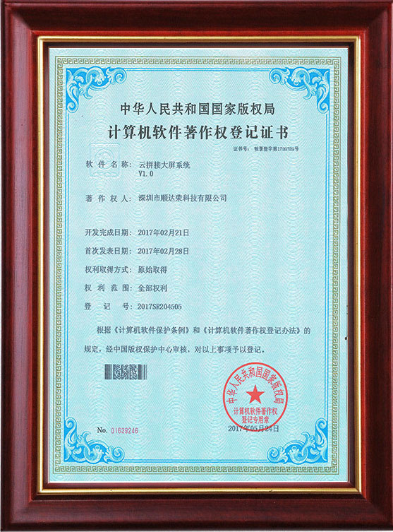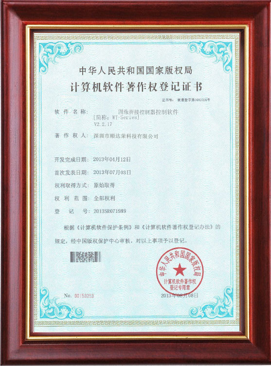 计算机软件著作权登记证书,证书软件名称:拼接处理器系统