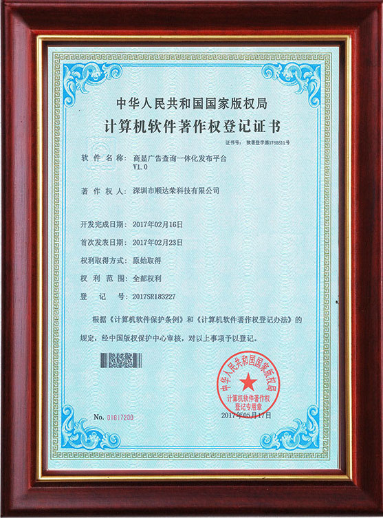 商显广告机查询一体机发布平台,计算机软件著作权证书。
