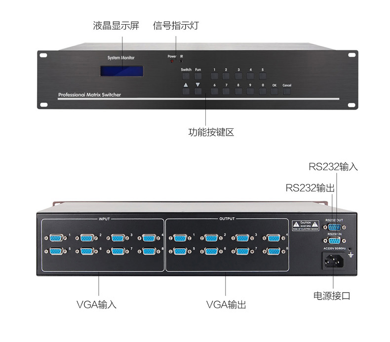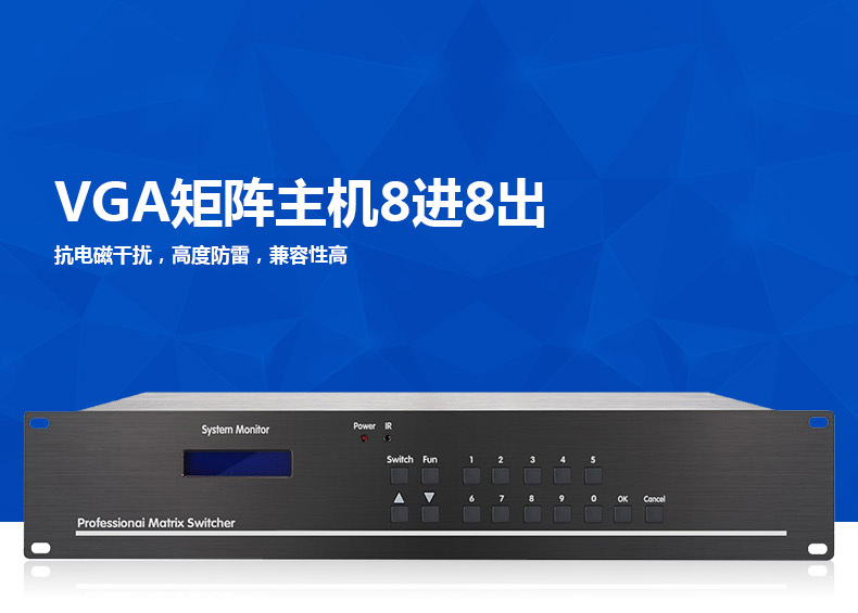 VGA矩阵切换器主机8进8出KD-VGA0808 高清网络监控服务器混插矩阵