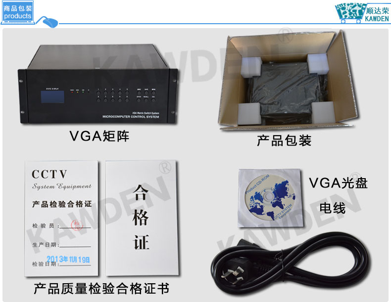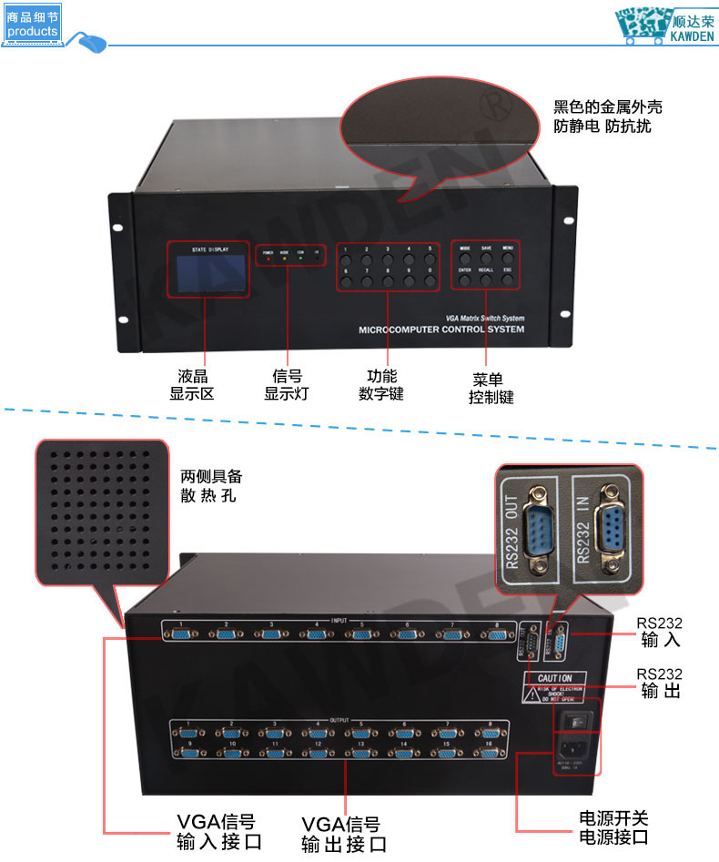 VGA矩阵切换器主机8进8出KD-VGA0808 高清网络监控服务器混插矩阵