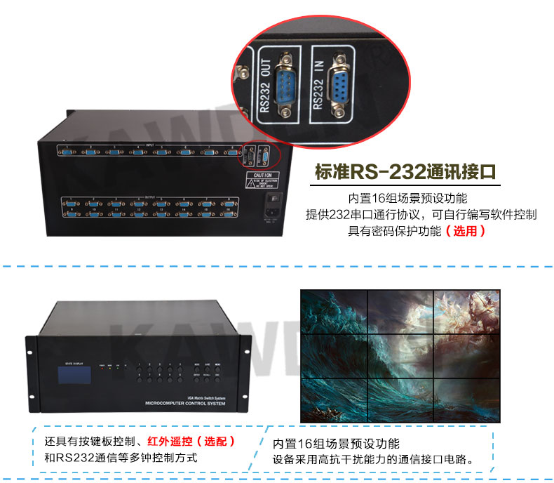 VGA矩阵切换器主机KD-VGA1608高清网络监控服务器16进8出