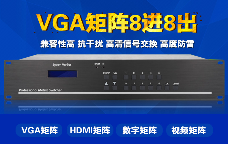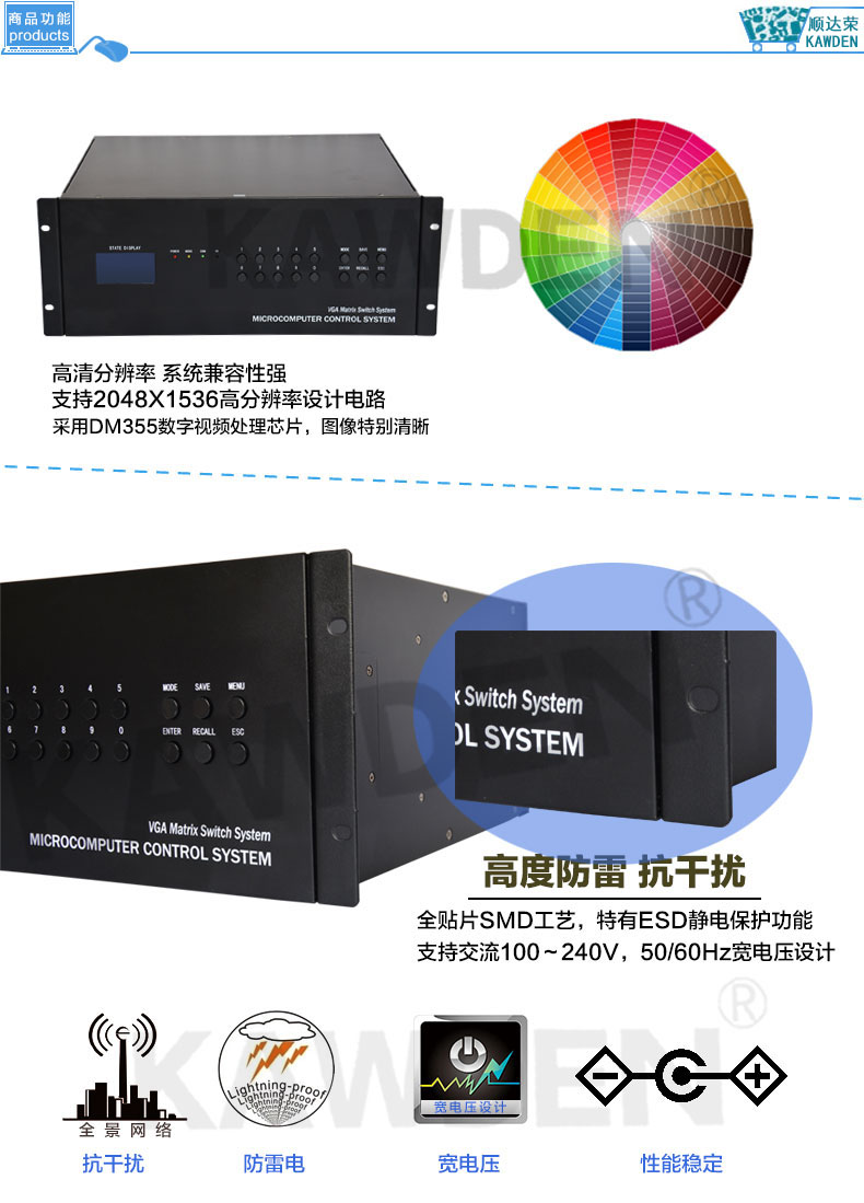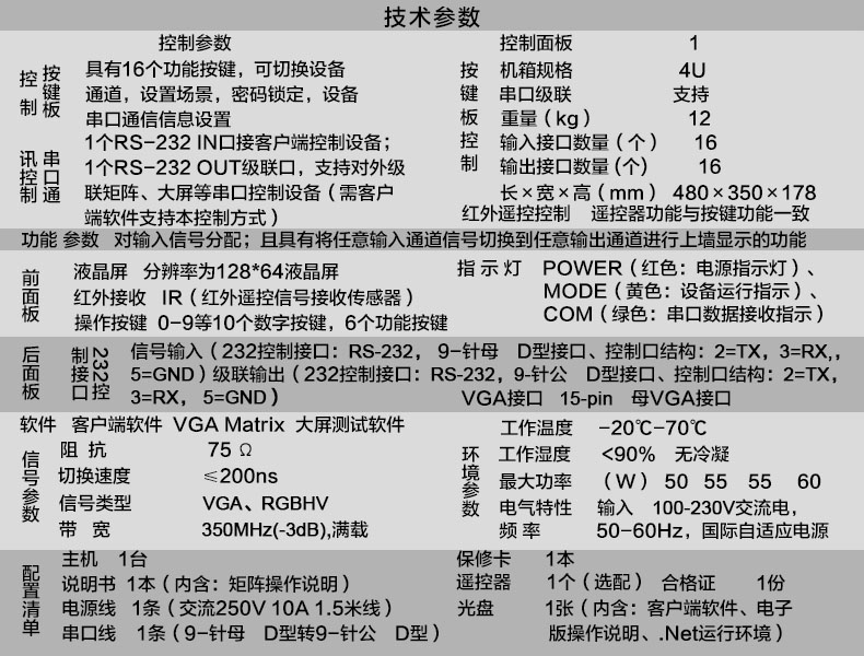 16进16出VGA矩阵切换器主机KD-VGA1616 数字高清网络监控服务器工程