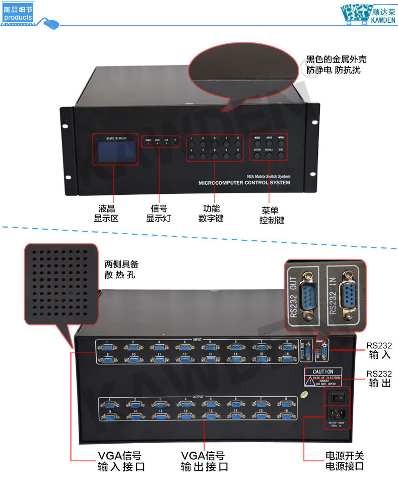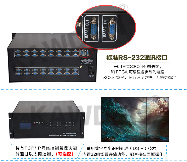 VGA矩阵切换器主机KD-VGA1608高清网络监控服务器16进8出