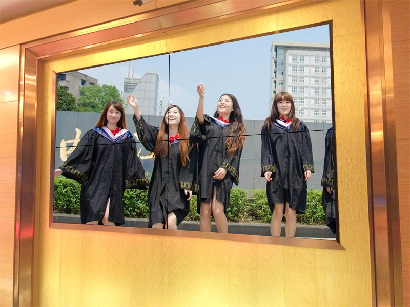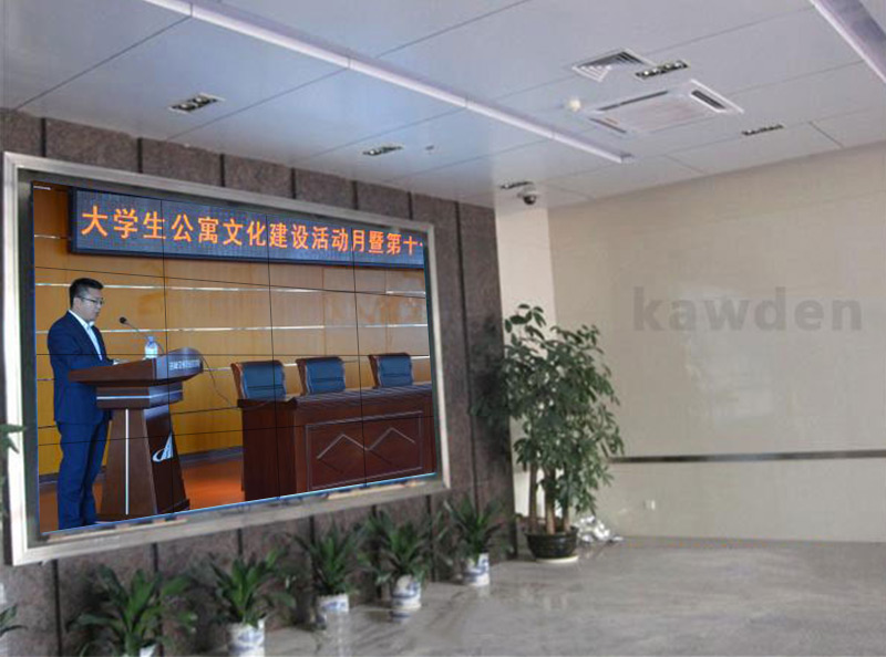 内江师范学院49寸2*2远程会议拼接屏展示项目案例 内江拼接屏用一台4进4出的HDMI控制器显示到2*2的拼接屏上...
