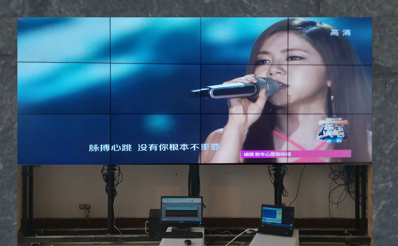利用一台1分16HDMI分配器将1个视频播放器的画面上到4*3的大屏拼接单元上去进行拼接显示。